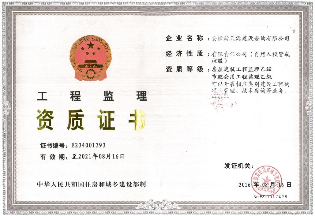 2014年1月取得工程監(jiān)理資質(zhì)證書;現(xiàn)工程招標代理及工程造價已取得甲級資質(zhì),并開展了環(huán)境影響評價、工程測量、房地產(chǎn)評估等業(yè)務(wù)。